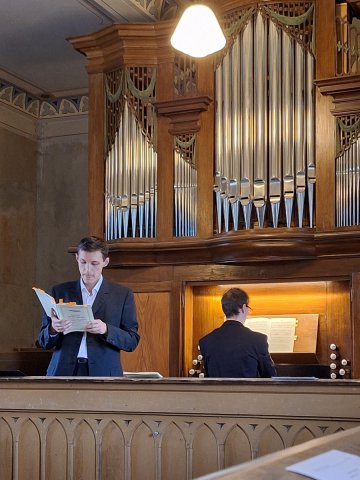 Paul Reinhard (Orgel) und Josua Gebelein (Gesang) erfüllten die Kirche Großpötzschau mit geistlichen Liedern aus dem Gesangbuch Bach-Schemelli.