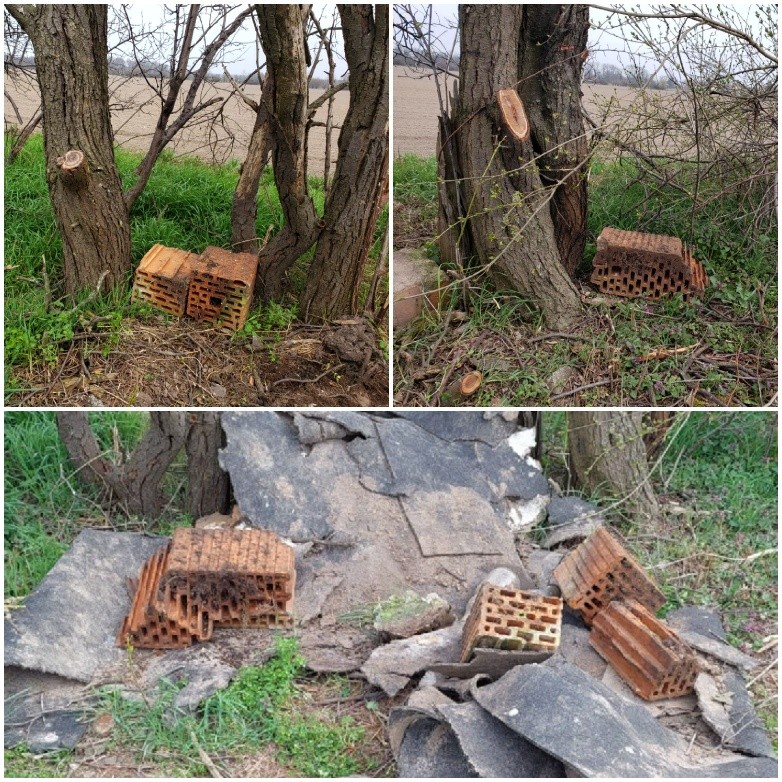 An unseren Gemeindegrenzen in Richtung Dreiskau-Muckern zu Großpösna haben wir für unsere Nachbarn ebenfalls einen kleinen Schandfleck beseitigt. Hier konnten wir sogar aus einem Teil des abgekippten Bauschutts ein Insektenhotel gestalten.