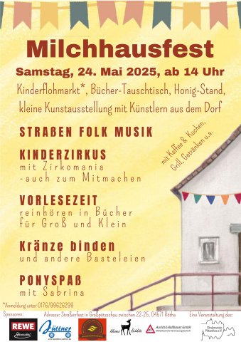 Straßenfest am Milchhäuschen in Großpötzschau mit Kaffee- und Kuchenaktion, Grill, Flohmarkt und was noch aus dem Dorf kommt inklusive Livemusik
